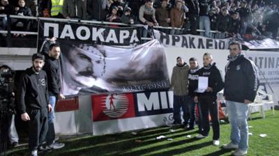 «Μέσα από τα βάθη της καρδιάς μας θα θέλαμε να ευχαριστήσουμε τους φιλάθλους του ΠΑΟΚ για την ιδιαίτερη τιμητική χειρονομία που μας επεφύλαξαν απονέμοντας μας τιμητική πλακέτα σε ένδειξη φιλίας και αναρτώντας πανό με τον αρχάγγελο της Κρήτης ΝΙΚΟ ΞΥΛΟΥΡΗ, που καταδεικνύει ότι το